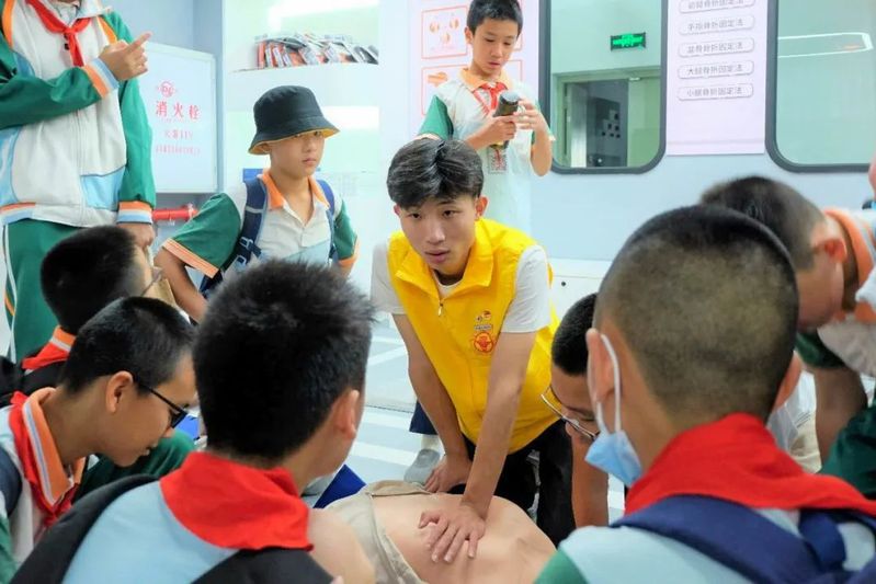 在活動過程中,每個班級的小朋友們分成4組,在志愿者的引領下排好隊一項項體驗。志愿者們流暢地講解著安全知識,帶著小朋友們在輕松愉快的體驗中學習到實用的安全技能。