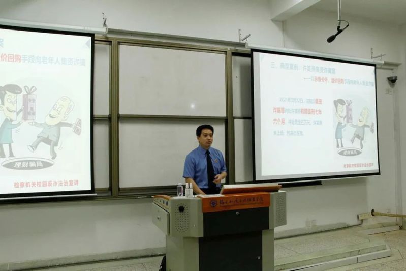 為了提高在校大學生防范非法集資意識,守護幸福家庭,引導大學生遠離非法集資,自覺抵制非法集資,維護經濟金融秩序和社會穩定,2022年6月22日晚上19:00,我院學生工作部特邀請倉山區檢察院在南區科技樓302教室組織開展《2022年防范非法集資知識宣講》講座。