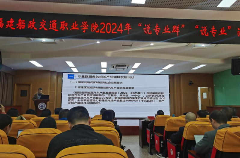 為貫徹落實黨的二十屆三中全會精神和全國教育大會精神,推動實施《福建船政交通職業學院學生技能提升三年行動方案》,持續深化職業教育產教融合,革新人才培養理念,提升育人質量,學院于12月13日在行政樓六樓學術報告廳舉行2024年“說專業群”“說專業”活動,學院副院長陳艷紅、相關部門長、二級學院院長、副院長以及教研室主任參加活動。