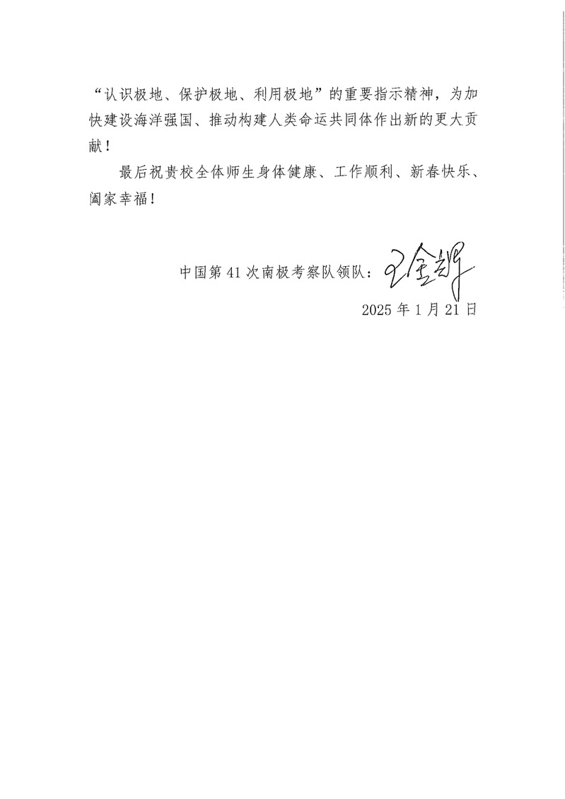 近日,遠在南極執行科學考察任務的中國第41次南極考察隊向我院發來春節賀電,感謝我院對極地事業的長期關心和大力支持,并向全院師生致以誠摯的節日問候!