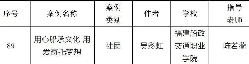 近日,福建省教育廳發布了《關于公布新時代學校百優溫暖集體建設案例的通知》,我院報送的《用心船承文化 用愛寄托夢想》成功入選百優案例,充分展示了我院在社團建設工作的突出成果和有效實踐。