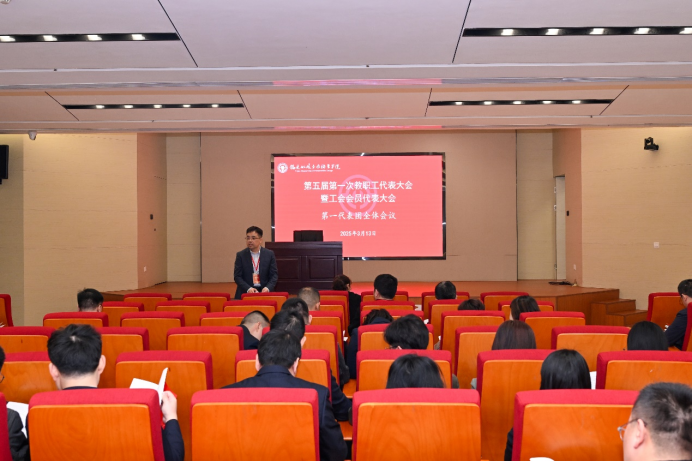 學院黨委書記陳宜大致閉幕辭。他指出“雙代會”作為教職工依法參加學院民主管理和監督的基本形式和現代大學治理體系的重要組成部分,要充分發揮“雙代會”在學院綜合改革中的制度優勢和治理效能,推動學院事業發展在守正創新中行穩致遠。他充分肯定了五屆一次“雙代會”取得的成果,并強調了三點工作要求:一是強化政治引領,筑牢民主治校新根基。二是落實立德樹人,鍛造強國戰略新引擎。三是聚焦黨建賦能,繪就改革發展新藍圖。希望全體教職工以此次“雙代會”為契機,高質量完成學院“十四五”發展規劃和年度工作任務,重點圍繞2025—2029年中國特色高水平高職學校和專業建設,對標職業本科建設目標,以更加奮發昂揚的姿態和優異的成績迎接學院辦學160周年和新中國成立80周年,用實際行動譜寫中國式職業教育現代化的船政新篇章!