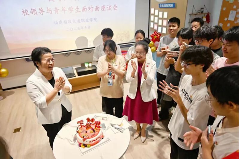 在青年之家,同學們圍繞專業發展、擇業方向、個人規劃及校園生活等話題踴躍發言;學院黨委副書記張輝與學院團委書記陳慧認真傾聽,對同學們提出的困惑逐一進行詳細解答并開展深入交流。座談會上,張輝副書記與師生們共同為新中國成立76周年慶生,師生們高聲祝?!白鎳湛鞓贰?,現場氣氛高漲,溫馨的一幕為座談會畫上了圓滿的句號。