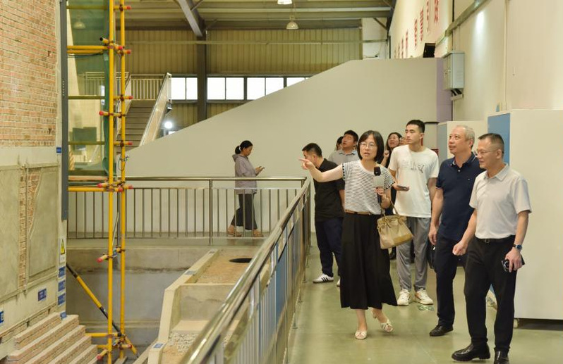 座談結束后,林一斌主任一行前往土木工程學院施工館進行實地考察,詳細了解了實訓設施的建設情況及教學活動開展情況,并表示學院優質的實訓教學環境為培育鄉村建設工匠提供了堅實基礎。